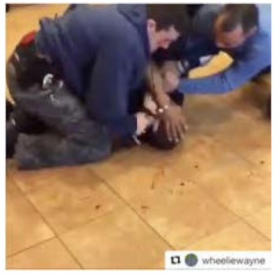 Η εικόνα που ακολουθεί προέρχεται από βίντεο που δείχνει τρεις λευκούς αστυνομικούς να κρατούν στο πάτωμα ένα μαύρο άντρα, τον οποίο γρονθοκοπούν αλύπητα.