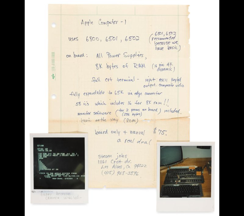 Όμως γιατί δυο φωτογραφίες και ένα ιδιόχειρο σημείωμα φαίνονται να έχουν τόσο μεγάλη αξία; Το χαρτί είναι ένα ιδιόχειρο σημείωμα του «γκουρού» της Apple και ιδρυτή της Steve Jobs που διαφημίζει τον πρώτο υπολογιστή της Apple αναφέροντας ότι δίνεται για μόλις 75 δολάρια. «Σωστή ευκαιρία» όπως περιγράφει και στον φίλο του, ο Steve Jobs, ειδικότερα αν αναλογιστούμε πως πλέον το συγκεκριμένο μοντέλο θα το βρουν οι συλλέκτες στα 270.000 δολάρια.