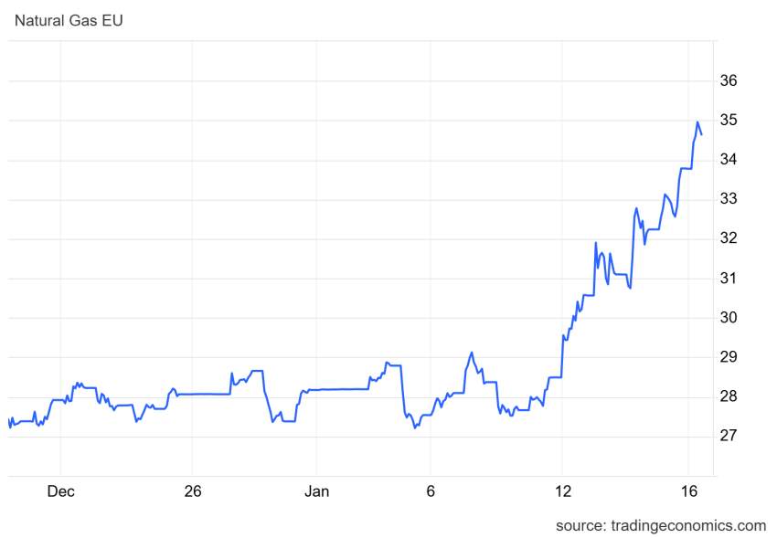 Επιπλέον, όπως σημειώνει η Trading Economics, οι ροές εξαγωγών LNG από τις ΗΠΑ, τον μεγαλύτερο εξαγωγέα στον κόσμο, υποχώρησαν στο χαμηλότερο επίπεδο δύο μηνών μετά από διακοπές σε βασικούς τερματικούς σταθμούς στο Τέξας. Ταυτόχρονα, οι γεωπολιτικές εντάσεις που συνδέονται με τις αναταραχές στο Ιράν εξακολουθούν να αποτελούν κίνδυνο για το παγκόσμιο εμπόριο LNG, ακόμη και καθώς οι φόβοι για άμεση παρέμβαση των ΗΠΑ έχουν υποχωρήσει.