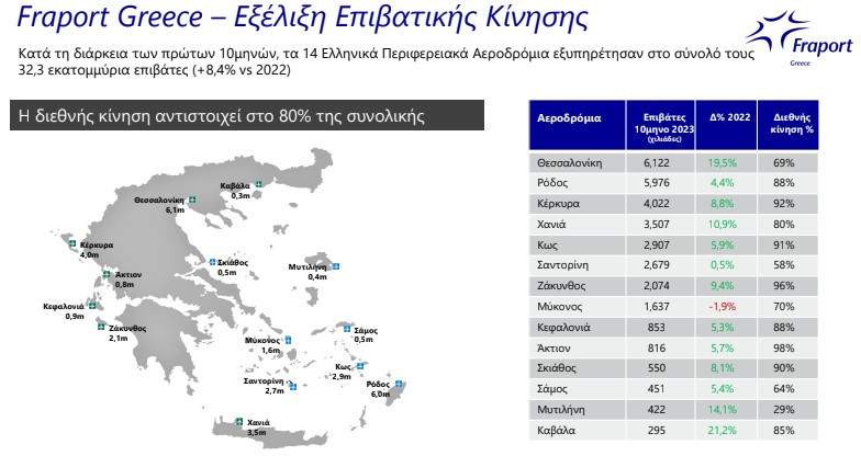 Fraport: Στα 32,4 εκατ. οι επιβάτες των 14 Περιφερειακών Αεροδρομίων στο 10μηνο