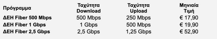 Με τρεις ξεκάθαρες επιλογές το ΔΕΗ Fiber προσφέρει την καλύτερη σχέση τιμής/απόδοσης στην αγορά.