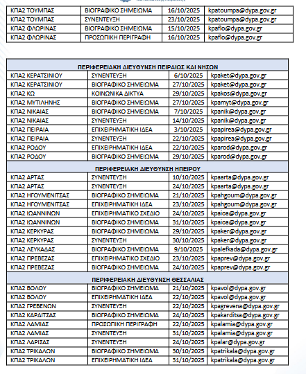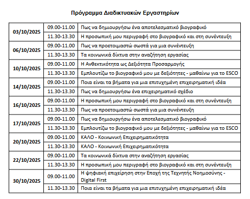 Οι ενδιαφερόμενοι μπορούν να δηλώσουν συμμετοχή από αύριο 25.09.2025 στη διεύθυνση https://www.dypa.gov.gr/workshops