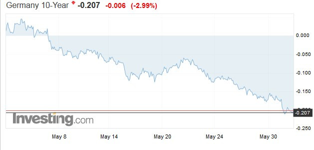 Για να βγουν σωστά συμπεράσματα, χρειάζεται να δει κανείς πώς διαμορφώθηκε, την ίδια περίοδο, το ευρύτερο περιβάλλον στις ευρωπαϊκές αγορές ομολόγων. Το ασφαλέστερο χρεόγραφο του κόσμου, το 10ετές bund, έκανε τη δική του ανοδική κούρσα τιμής, καθώς οι επενδυτές αναζητούν ασφαλή καταφύγια σε ένα περιβάλλον έντονης αστάθειας στο διεθνές οικονομικό σύστημα, λόγω της επιθετικότητας Τραμπ στα θέματα του εμπορίου. Έτσι, η απόδοση του bund είναι αρνητική και έπεσε χθες σε επίπεδο ρεκόρ, στο -0,207%.
