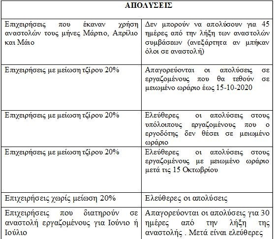 - Για όσο διάστημα διαρκεί το πρόγραμμα απαγορεύονται οι απολύσεις και οι μειώσεις μισθού στους εργαζομένους που έχουν ενταχθεί στο πρόγραμμα.