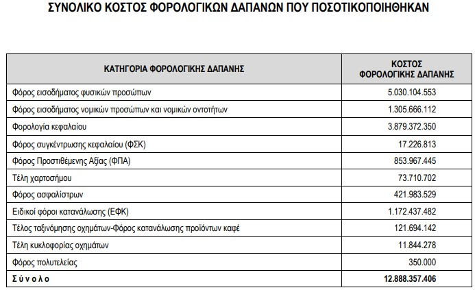 Αύξηση 2,7 δισ. ευρώ στις φοροαπαλλαγές φυσικών και νομικών προσώπων