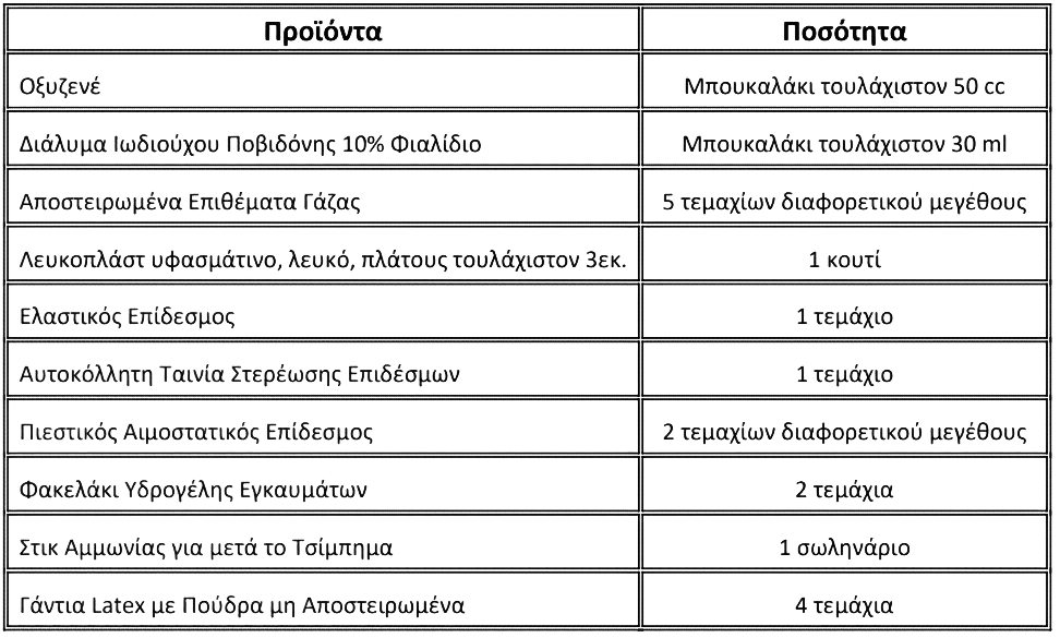 Σύμφωνα με την οδηγία το φαρμακείο θα πρέπει να περιλαμβάνει: