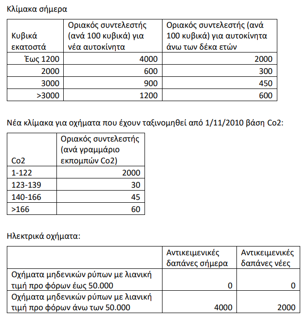 Όσον αφορά στα αυτοκίνητα, δεν υπάρχει απλώς «ψαλίδισμα» αλλά αλλαγή του τρόπου υπολογισμού των τεκμηρίων. Σήμερα, οι αντικειμενικές δαπάνες υπολογίζονται απλώς και μόνο βάσει κυβισμού. Πλέον, για αυτοκίνητα που έχουν ταξινομηθεί μετά την 1η Νοεμβρίου του 2010, οι αντικειμενικές δαπάνες θα προσδιορίζονται βάσει των εκπομπών διοξειδίου του άνθρακα κατ’ αναλογία με τα τέλη κυκλοφορίας.