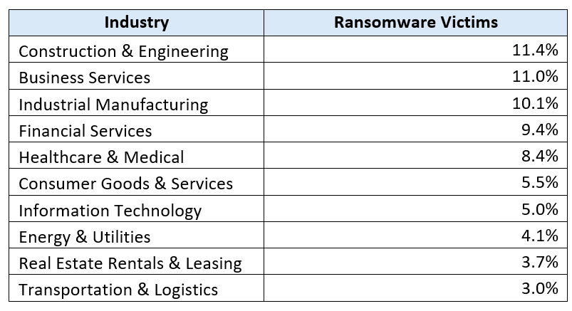 - Άλλοι βασικοί τομείς — συμπεριλαμβανομένων των χρηματοοικονομικών υπηρεσιών (9,4%), της υγειονομικής περίθαλψης (8,4%) και των καταναλωτικών αγαθών (5,5%) — εξακολουθούν επίσης να αποτελούν στόχο, αντανακλώντας τη συνεχή διαφοροποίηση του ransomware.