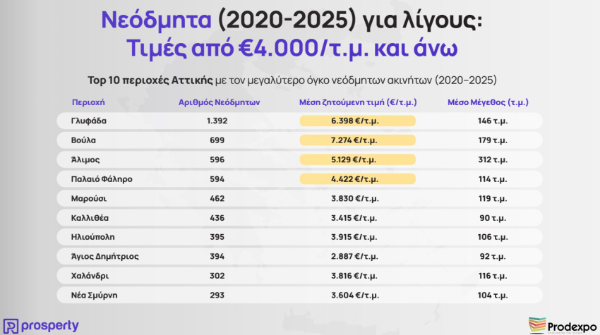 Δεύτερο πρόβλημα, η αναντιστοιχία ζητούμενων- τελικών τιμών, που δημιουργεί στρεβλή εικόνα της αγοράς. Είναι ενδεικτικό ότι η μέση ζητούμενη τιμή σε 131 χιλιάδες αγγελίες διαμορφώνεται στα 2.583 ευρώ/τμ, αλλά από τις 28.700 αγοραπωλησίες που ολοκληρώθηκαν, προκύπτει μέση αξία μεταβίβασης μόλις 1.329 ευρώ/τμ. Τρίτο πρόβλημα, οι απλησίαστες τιμές στα νεόδμητα. Ενδεικτικά, στο παραλιακό μέτωπο οι τιμές έχουν εκτιναχθεί πολύ πάνω από τις 4.000 ευρώ/τμ, ενώ υψηλές τιμές καταγράφονται ακόμα σε περιοχές όπως το Μαρούσι, η Νέα Σμύρνη, το Χαλάνδρι.