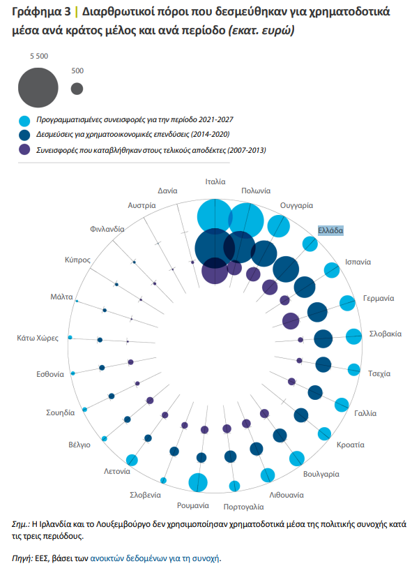 Η χώρα μας μπήκε στο δείγμα ελέγχου, μαζί με τη Γερμανία, την Ιταλία, την Ουγγαρία και τη Σλοβακία. Στόχος του ελέγχου ήταν να συμβάλει στην προετοιμασία της περιόδου μετά το 2027, ώστε να βελτιστοποιηθεί η επαναχρησιμοποίηση των υφιστάμενων χρηματοδοτικών μέσων, καθώς και όσων νέων δημιουργήθηκαν κατά το δεύτερο ήμισυ της τρέχουσας περιόδου, διερευνώντας τους λόγους για τους οποίους η επαναχρησιμοποίηση δεν είναι ακόμη επαρκής και προσδιορίζοντας τρόπους για την περαιτέρω ενθάρρυνσή της.