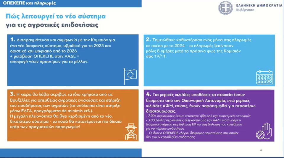 - Χρονοδιάγραμμα: Από την 1η Νοεμβρίου του 2026, μετά την υποβολή του νέου ΟΣΔΕ 2026 (μέχρι τότε το υπάρχον σύστημα).