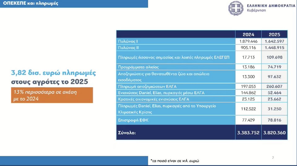 Ο κ. Χατζηδάκης τόνισε ότι το αγροτικό ζήτημα βρίσκεται στο επίκεντρο, σημειώνει πως η κυβέρνηση και η ΝΔ έχουν αναλάβει τις ευθύνες τους στον ΟΠΕΚΕΠΕ και υπογραμμίζει ότι οι πληρωμές προς τους αγρότες το 2025 φτάνουν τα 3,82 δισ. ευρώ.