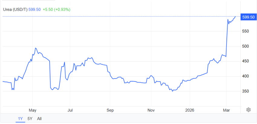 Προφανές είναι ότι η έλλειψη πρώτων υλών για λιπάσματα δεν θα επηρεάσει μόνο αυτές τις περιοχές. Είναι ενδεικτικό ότι η τιμή της ουρίας έχει αυξηθεί κατά 34% σε έναν μήνα, φτάνοντας στα επίπεδα του Νοεμβρίου του 2022 και η τιμή του θείου κατά περίπου 21%, ξεπερνώντας τα επίπεδα-ρεκόρ του Ρωσοουκρανικού πολέμου.